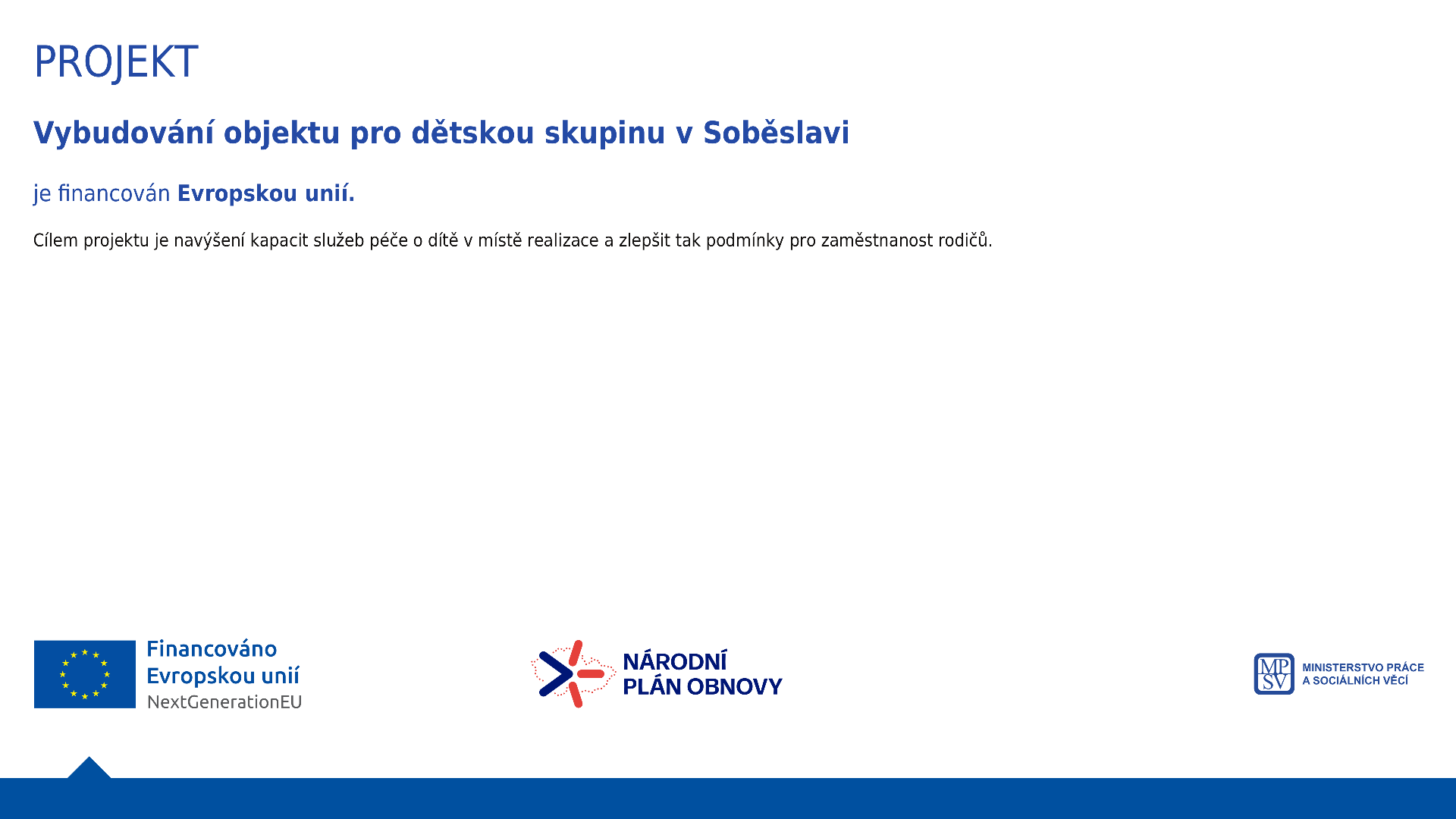 Vybudování objektu pro dětskou skupinu v Soběslavi