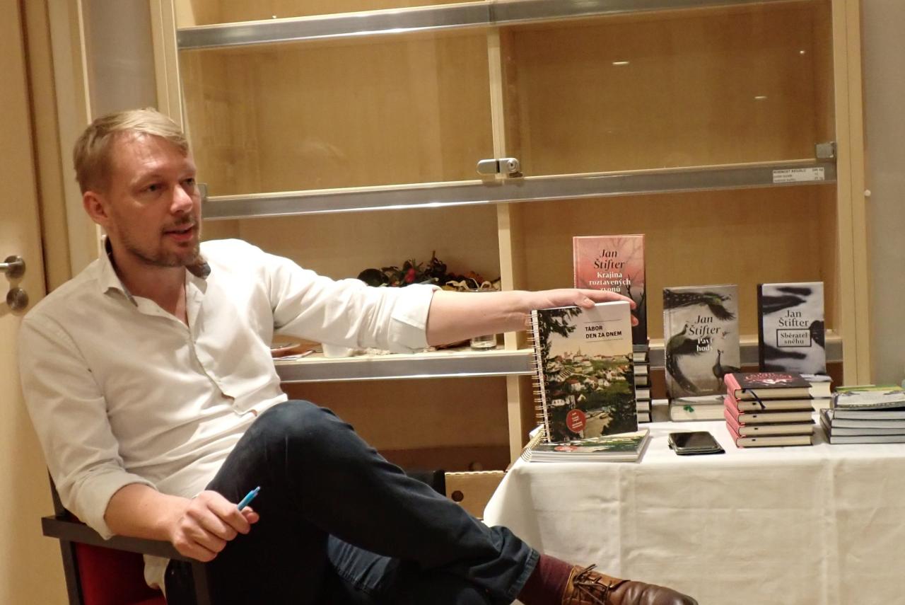 Jan Štifter přijel 15. října do Soběslavi představit zejména publikaci "Tábor den za dnem", ale přivezl s sebou všechny doposud vydané knihy z jeho tvorby, tedy kromě té první, která již není ke koupi. Za román Sběratel sněhu získal řadu ocenění včetně Ceny čtenářů České knihy. Novelu Café Groll adaptovalo Jihočeské divalo.