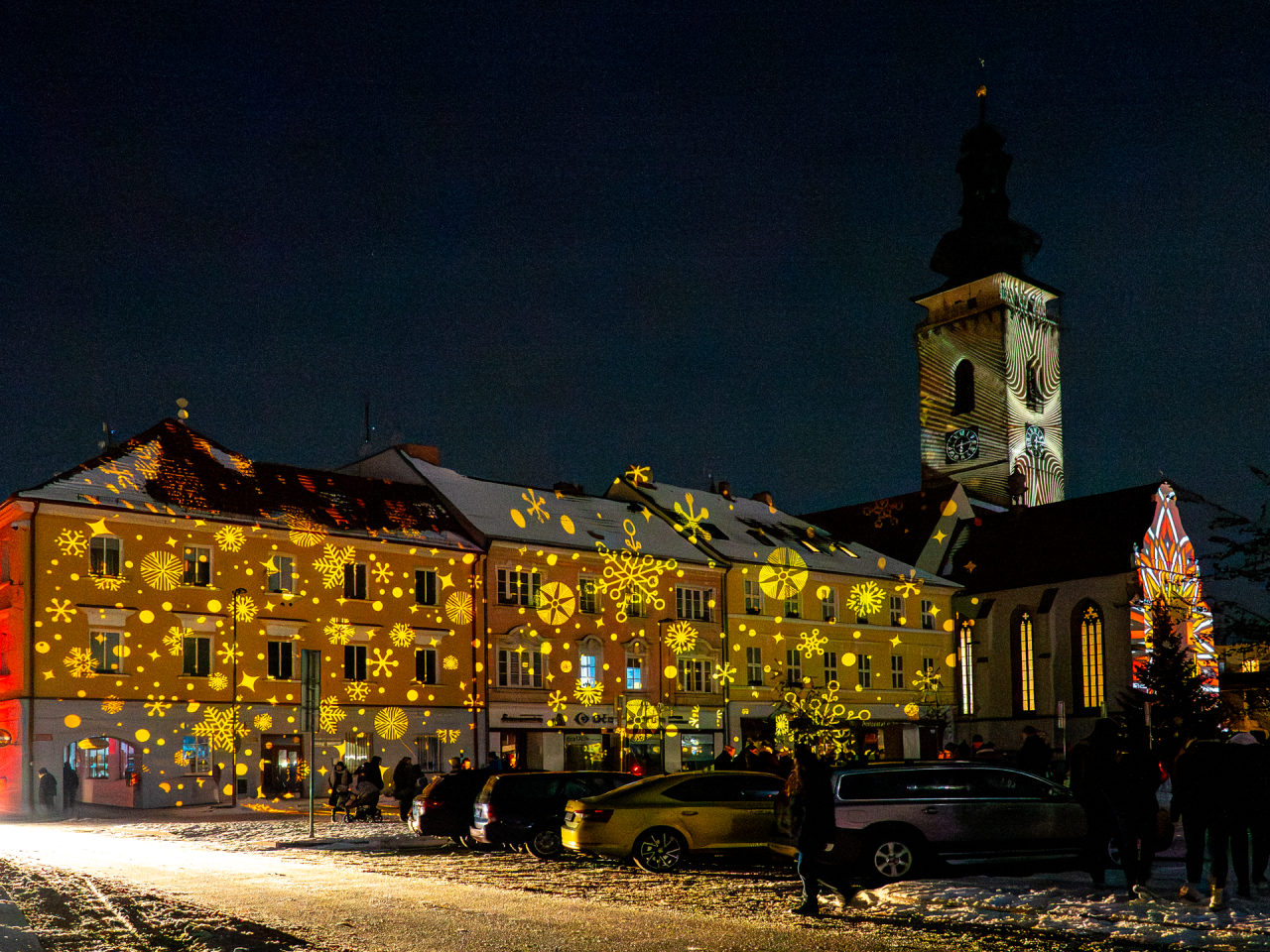 S myšlenkou užít si společné chvíle a vnímat atmosféru přátelství a sounáležitosti, která nás provázela celým adventem, jsme připravovali také novoroční akci 1. ledna na náměstí Republiky. Přáli jsme si, aby naše náměstí zářilo, aby se lidé měli kde setkat a prožít spolu chvíle, na které se nezapomíná. Speciálně pro tuto příležitost jsme proměnili náměstí v Soběslavi ve velké organické plátno a spolu s výtvarníky připravili světelnou projekci, která osvětlovala městské budovy a dominantu náměstí – kostel sv. Petra a Pavla spolu s městskou věží. Věříme, že jsme touto projekcí vytvořili jedinečnou atmosféru pro malé i velké, která trvala téměř dvě hodiny, kdy děti mohly pobíhat v barevných obrazech promítající se i na zem, dospělí se mohli občerstvit teplými nápoji a popovídat při jemných melodiích jazzu.
