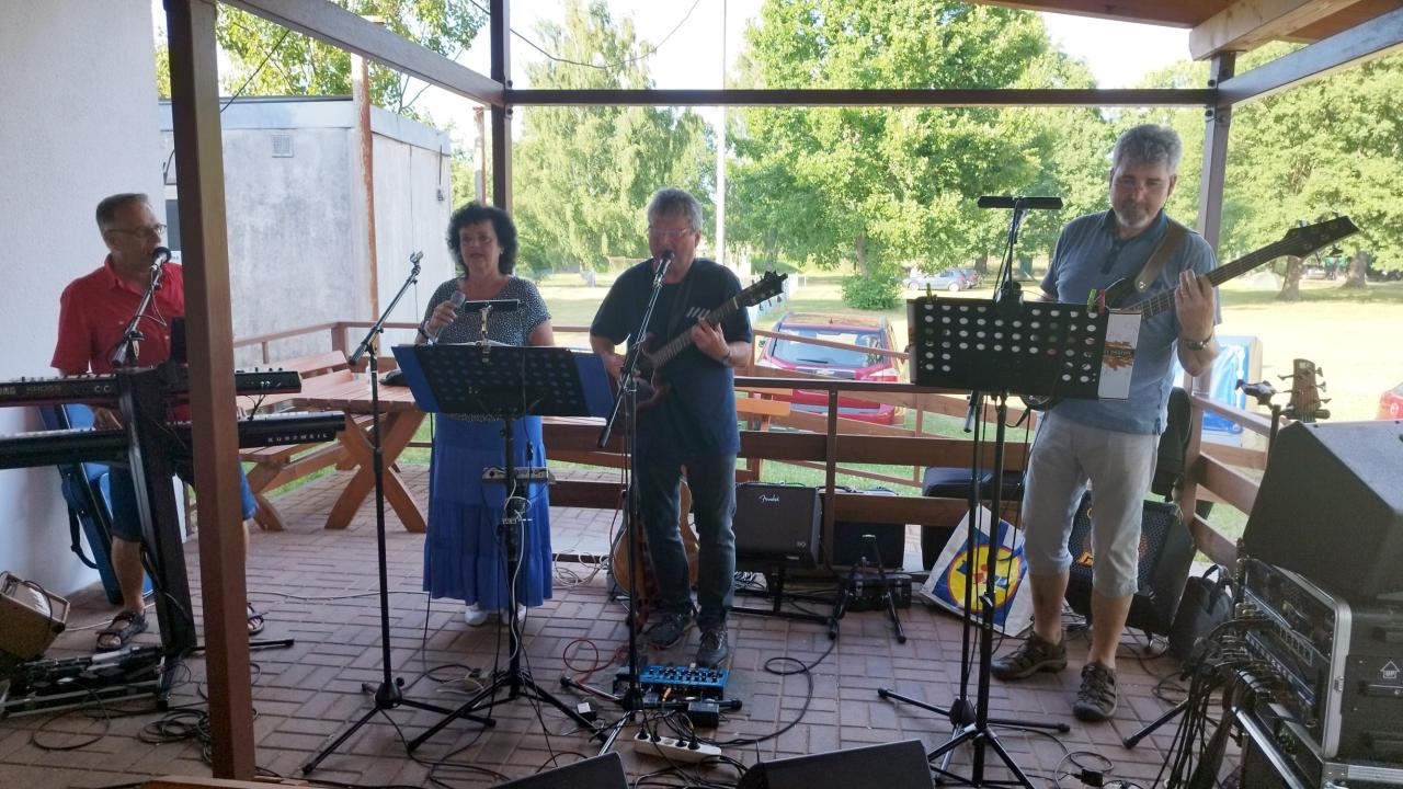 K poslechu a tanci kapela zahrála české pecky, které se k tamní kempové atmosféře skvěle hodí.