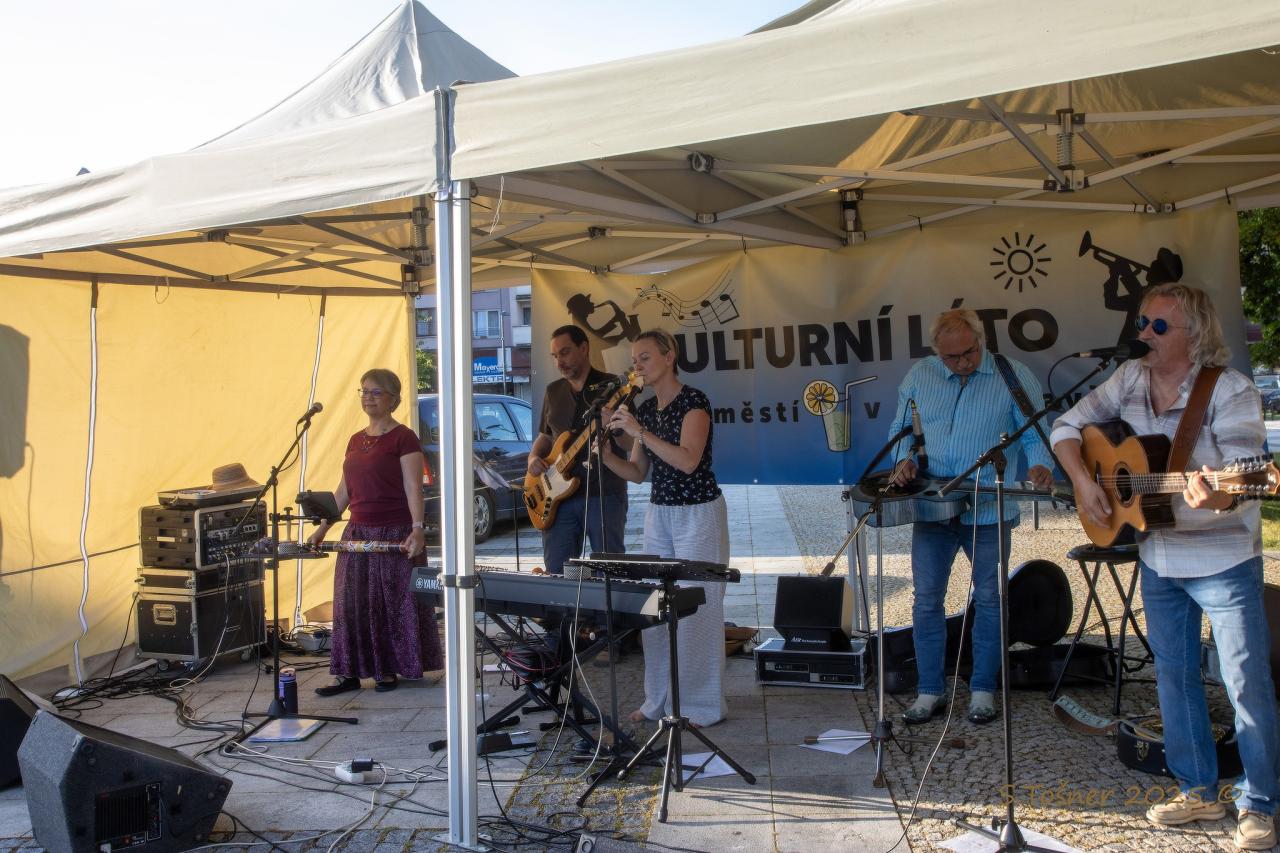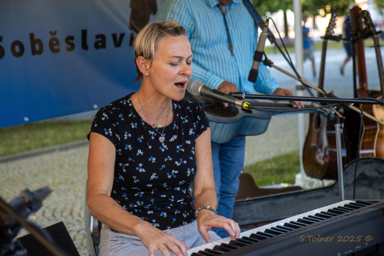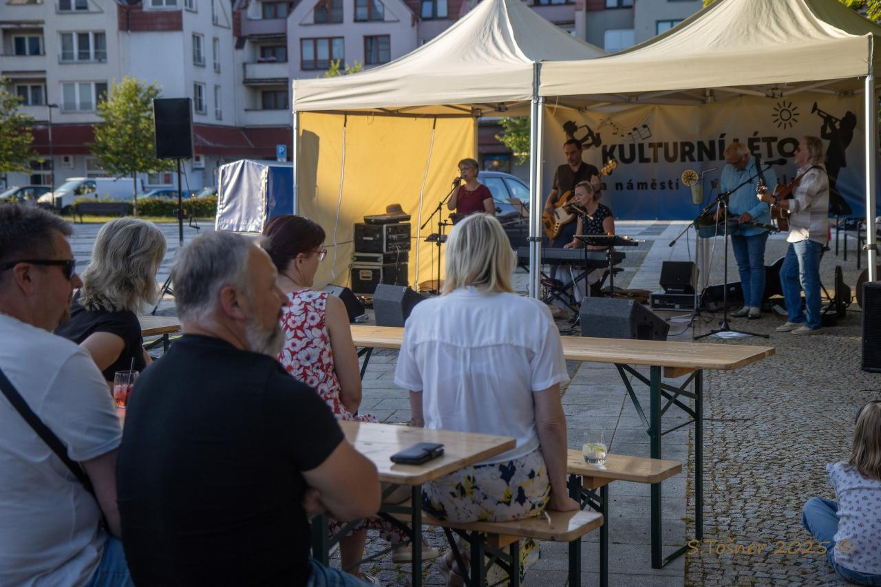 V sobotu v podvečer proběhl na náměstí Republiky krásný koncert skupiny Dobrý ročník trio a Saši Niklíčkové, která zahrála na akordeon.