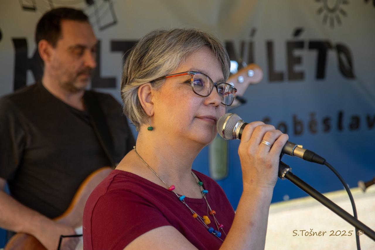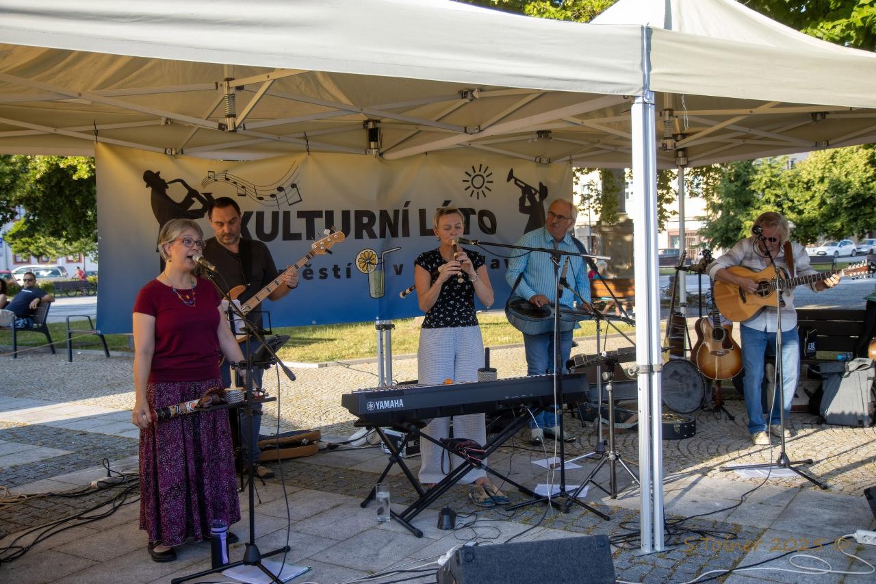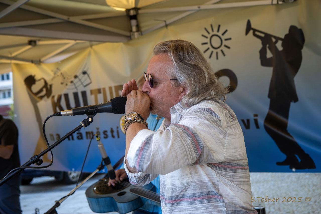 V sobotu v podvečer proběhl na náměstí Republiky krásný koncert skupiny Dobrý ročník trio a Saši Niklíčkové, která zahrála na akordeon.