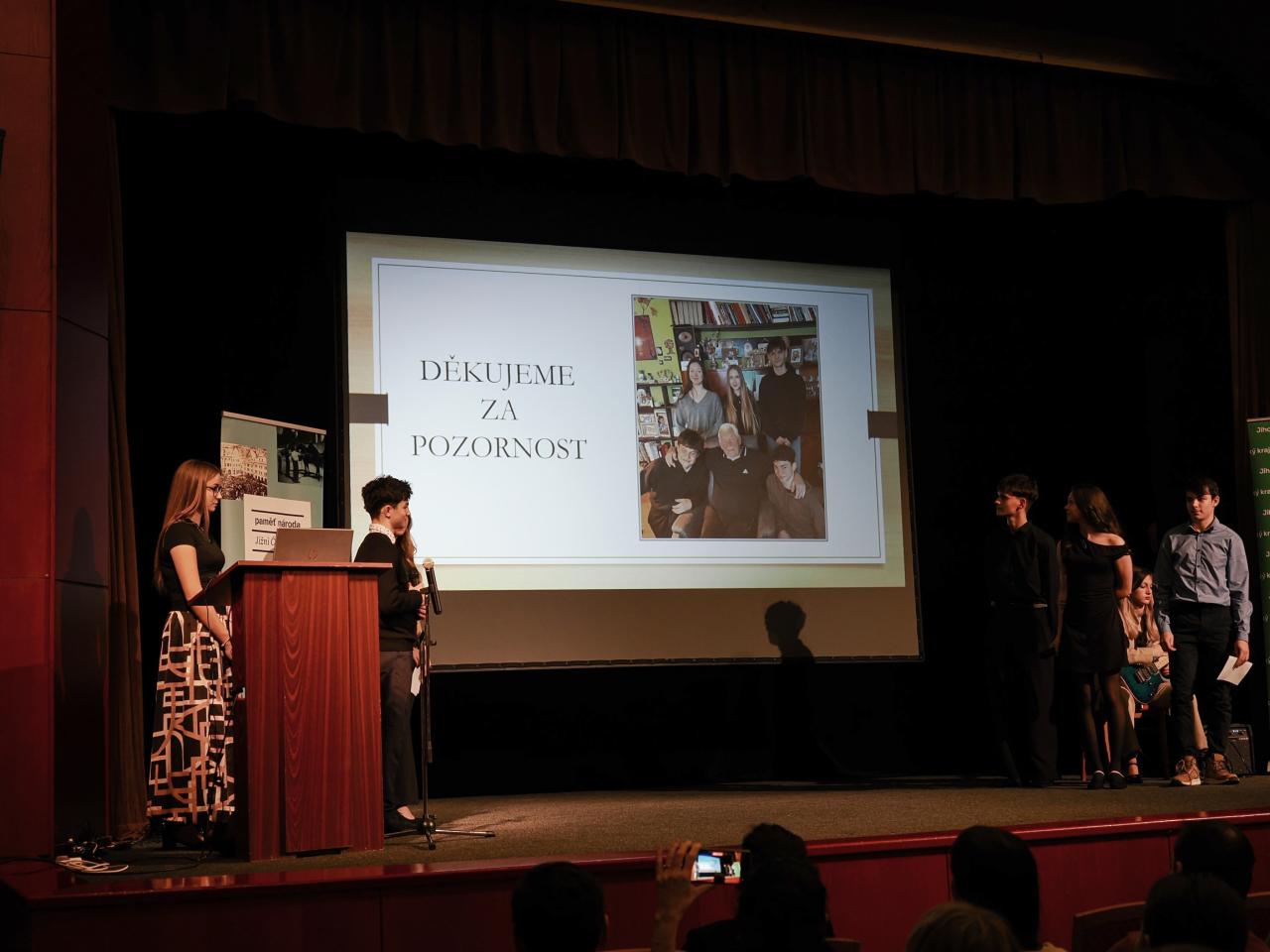 Hlediště bylo zaplněno do posledního místa rodiči, přáteli a učiteli, jejichž tváře zářily hrdostí a očekáváním. Na pódiu se střídaly jednotlivé žákovské a studentské týmy, které představily osobnost vybraného pamětníka a přiblížily ji publiku pomocí fotografií, krátkých videí nebo scénkou. Vystoupení studentů bylo plné nápadů a originality. Bylo znát, že si všichni dali záležet a že za každým výkonem stojí hodiny příprav. Publikum reagovalo nadšeně – po každém vystoupení následoval dlouhý a upřímný potlesk. Úsměvy na tvářích účinkujících mluvily za vše, nervozita se postupně měnila v radost. Výkony žáků a studentů si zaslouží velké uznání.