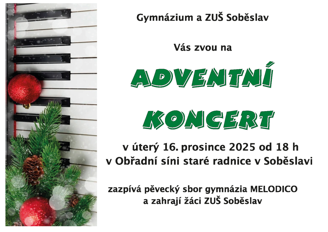 Gymnázium a ZUŠ Soběslav srdečně zvou na společný adventní koncert do staré radnice.