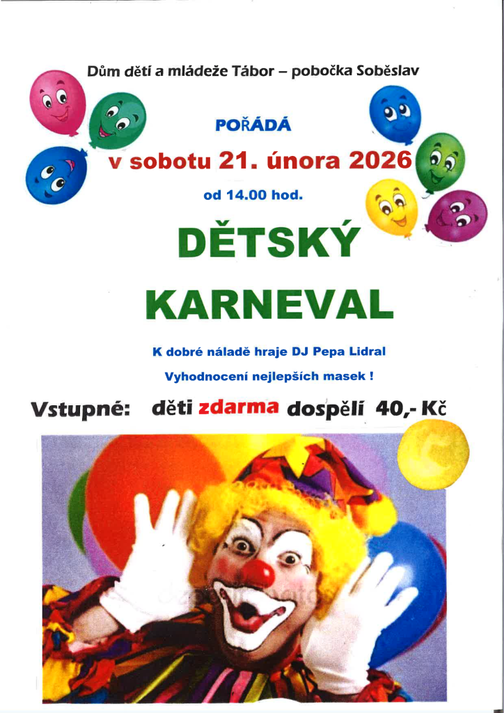 Dům dětí a mládeže Soběslav zve děti na karneval.