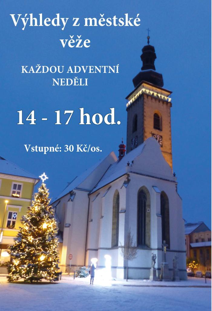 Městská věž pro vás bude otevřena každou adventní neděli od 14 do 17 hodin. První adventní neděli 30. 11. je otevřena do 18 hodin.