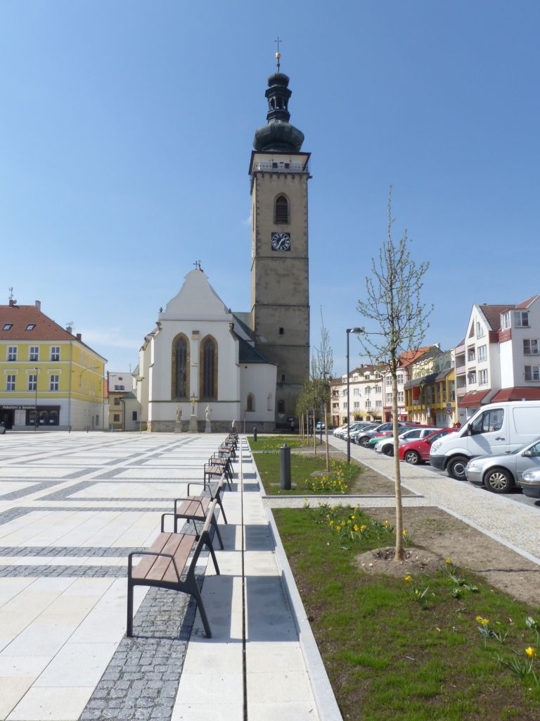 Nedílnou součástí kostela je štíhlá 68 m vysoká věž s barokní bání. Z věže se nabízí zajímavý pohled na město a okolní krajinu. Za jasného počasí lze dohlédnout na Šumavu, Novohradské hory, opačným směrem je pak vidět Choustník a klikatící se Lužnice. Turisté věž mohou navštívit během letních prázdnin (červenec – srpen od 9 do 17 hodin).