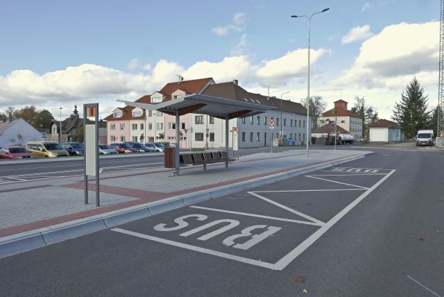 - nové odstavné parkoviště se systémem P+R pro osobní automobily cestujících, kteří po zaparkování auta použijí veřejnou dopravu (v prostoru bývalého autobusového nádraží). Celkem vzniklo 52 kolmých parkovacích stání a 3 stání pro invalidy.
