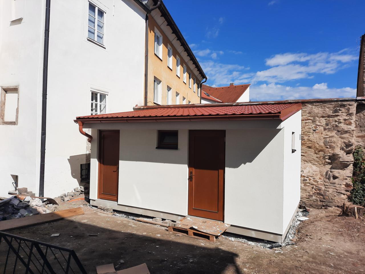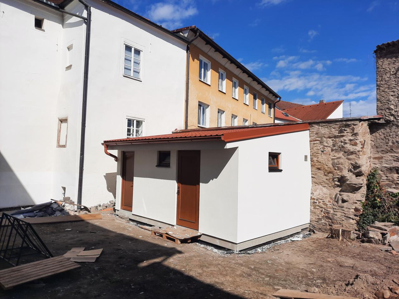 Jednalo se o stavbu sociálního zázemí (WC) pro návštěvníky muzea. Proběhlo připojení na stávající rozvody elektřiny, vodovodu a kanalizace z objektu. Stavba je z panelového systému lehké dřevostavby.