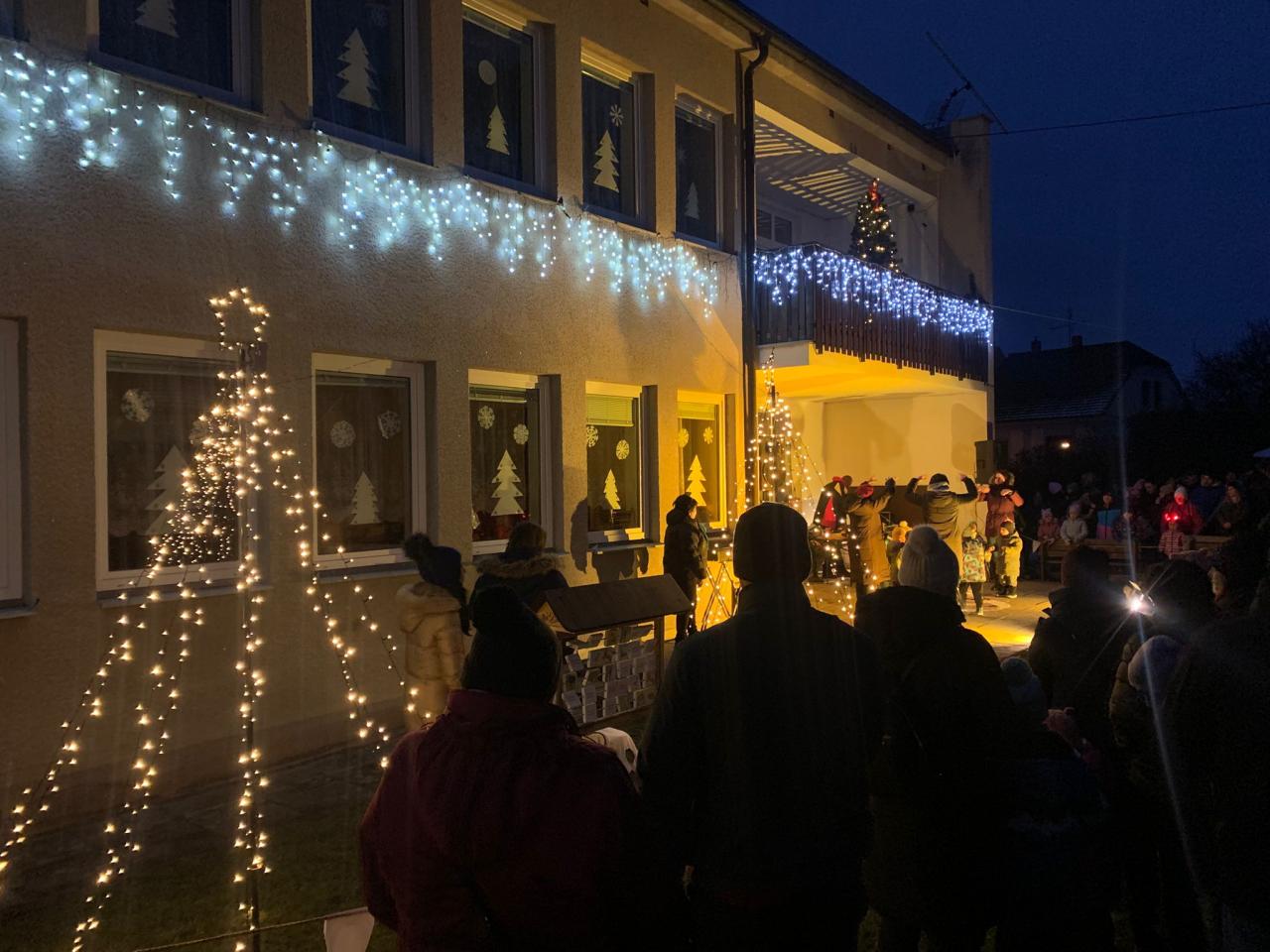 Všichni byli v plném očekávání slavnostního rozsvícení mateřské školy. Děti ze všech tříd vystoupily s krátkým hudebním programem. Čertovský tanec, zpěv vánočních písní a koled se rozezněly celou zahradou. Vánoční atmosféru umocnila vůně ovocného punče, kávy a dobrého občerstvení. Pro děti byly připraveny "andělské úkoly" a fotokoutek. Na závěr si všichni zazpívali vánoční koledy.