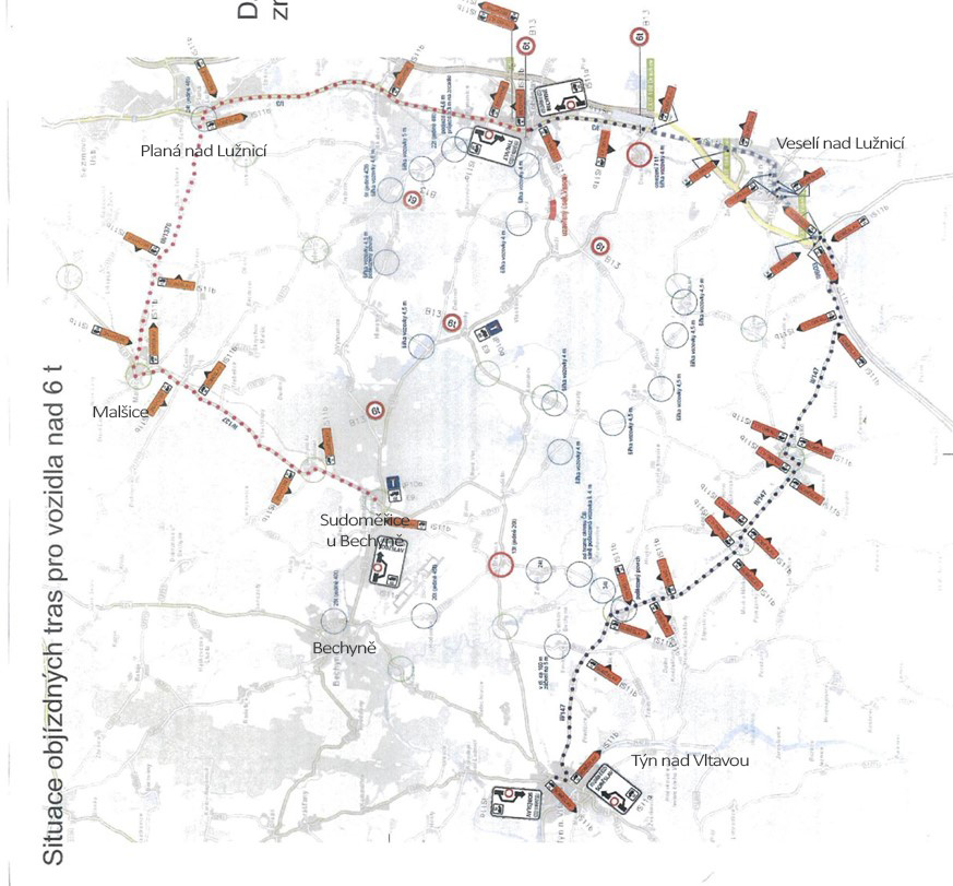 Objízdné trasy pro auto nad 6 t.
