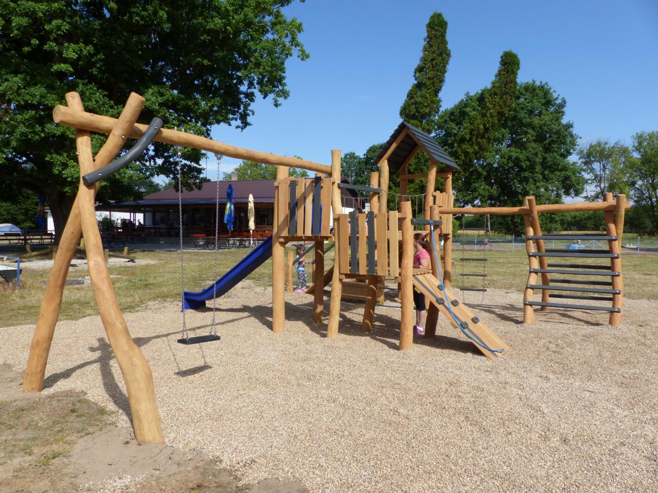 Spol. Hřiště hrou, s.r.o., dokončila na dětském hřišti v kempu TJ Spartak Soběslav výměnu opotřebovaného herního prvku za novou herní sestavu.