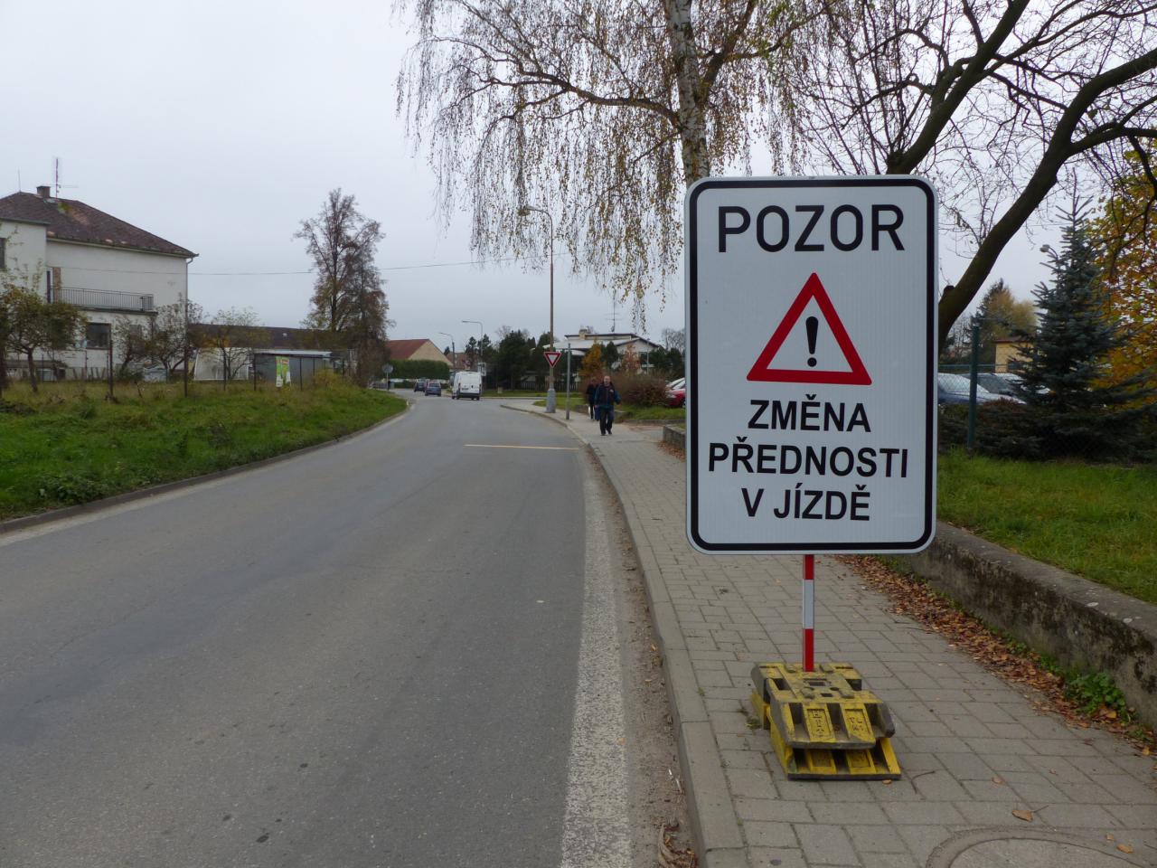 Upozorňujeme, že uvedením do provozu nového úseku přeložky silnice druhé třídy č. 135 došlo ke změně organizace dopravy spočívající v úpravě přednosti v jízdě. Žádáme řidiče, aby pozorně sledovali dopravní značky.